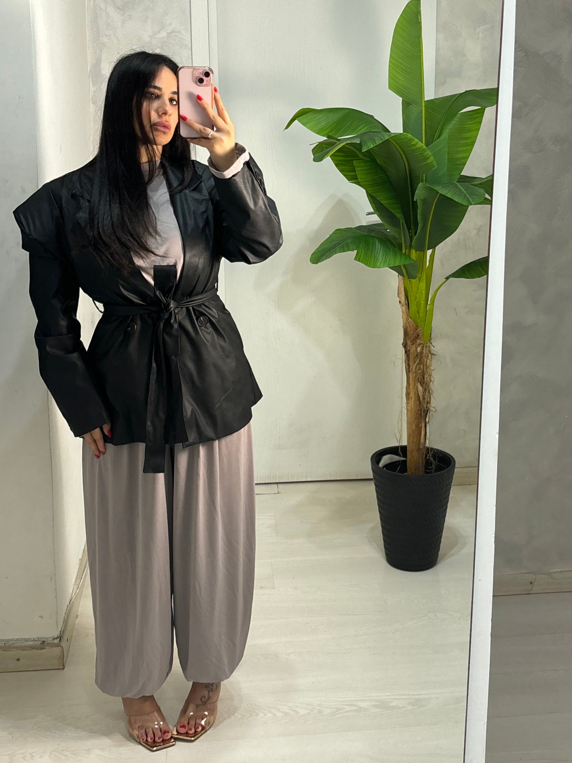 Giacca ecopelle spalline JUST
